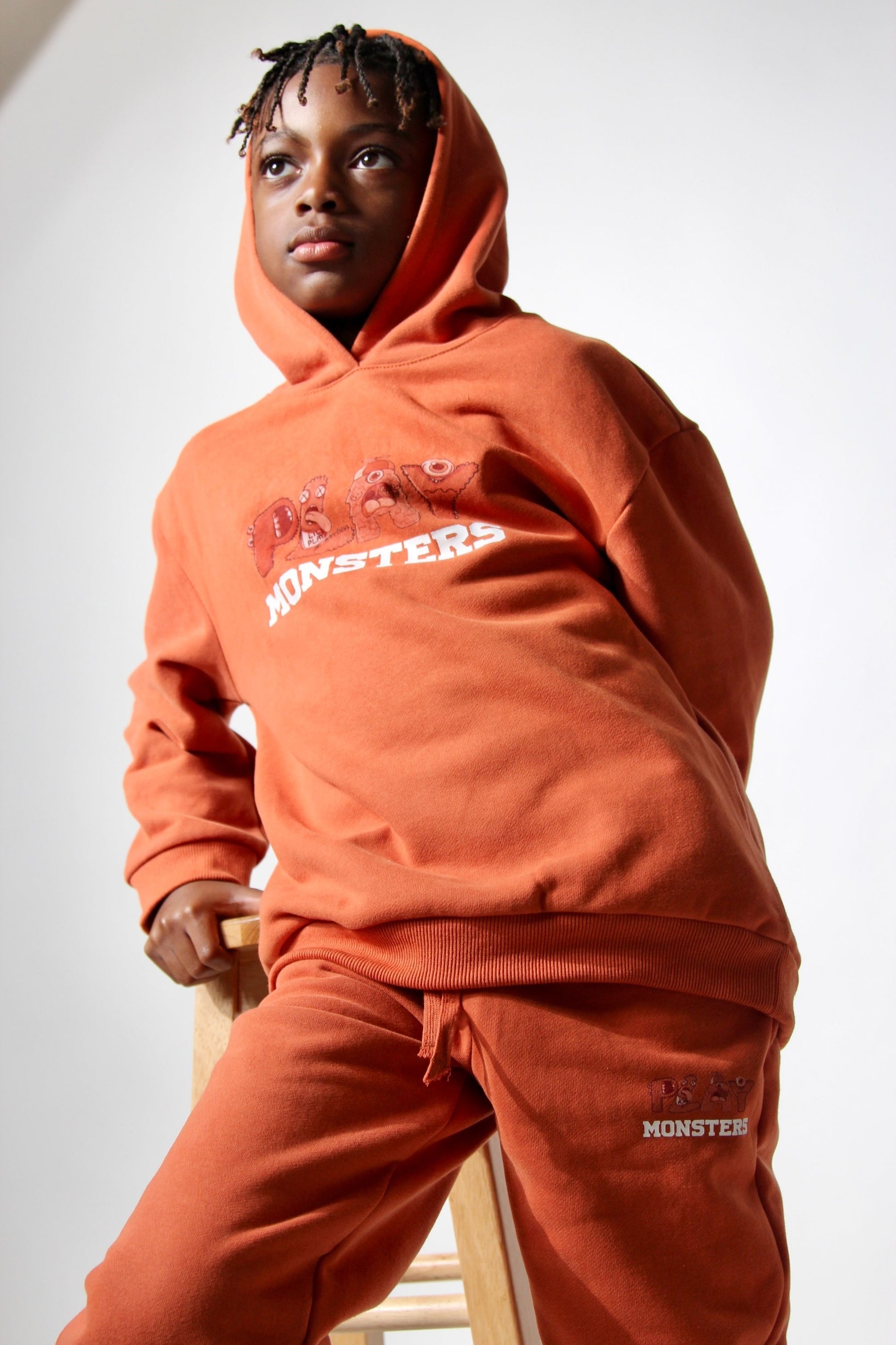 Introducing our Play logo with a Monster font 100% Cotton Sweatsuit – a perfect blend of comfort, style, and a touch of playful charm that your little one will adore! Crafted with the highest quality materials, this dark Orange sweatsuit is designed to keep your child cozy and stylish during all their adventures.