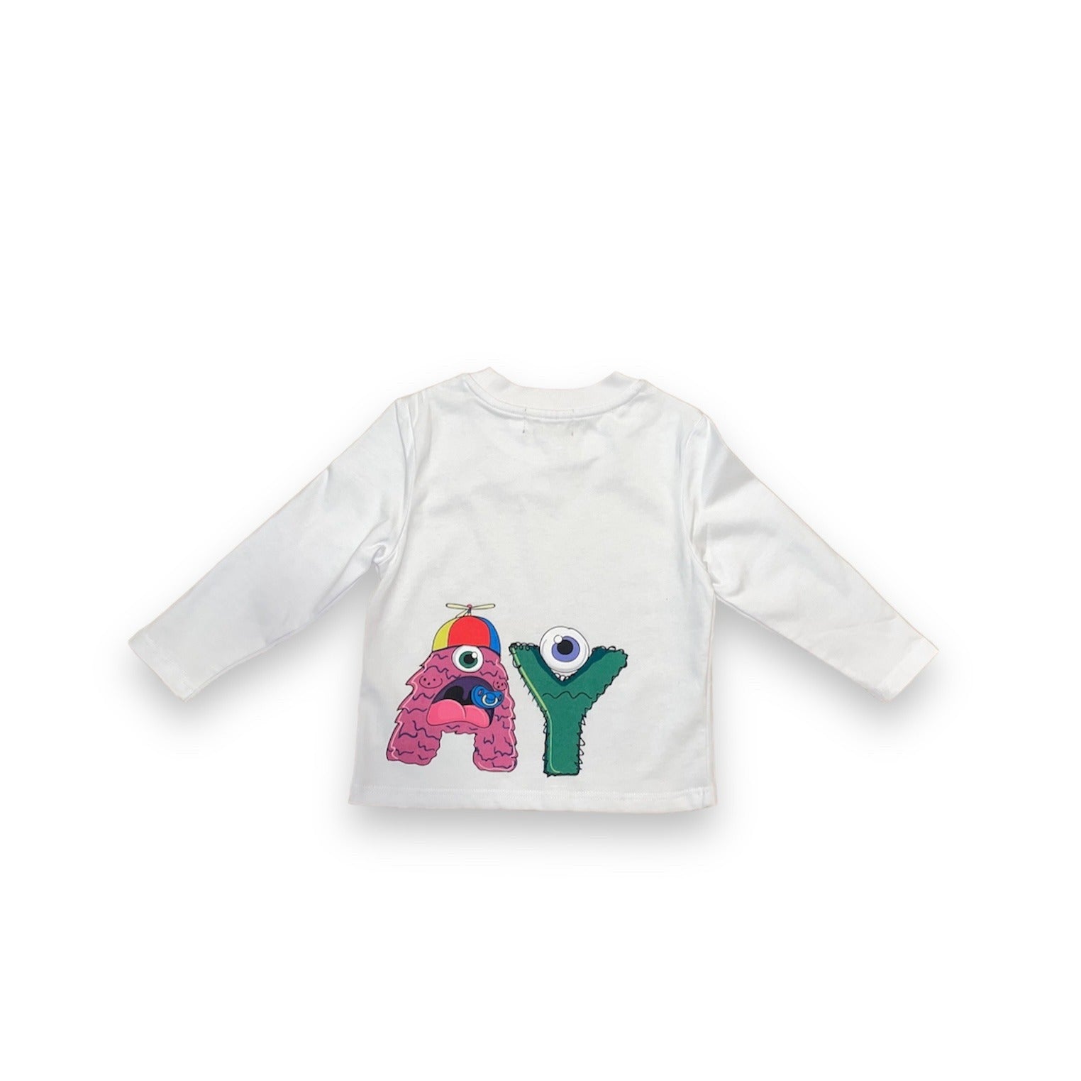 Introducing our vibrant and playful Long Sleeve T-Shirt, the perfect addition to your little one's wardrobe! Crafted with comfort and style in mind, this shirt features a unique twist on our classic monster graphic, sure to ignite your child's imagination. But the excitement doesn't stop there! Our design extends to the front and back, where the letters "PL" grace the front and "AY" embellish the back, completing the word "PLAY" when your little one turns around. This clever placement adds an element of surprise and whimsy to the shirt, encouraging playful interaction and movement.