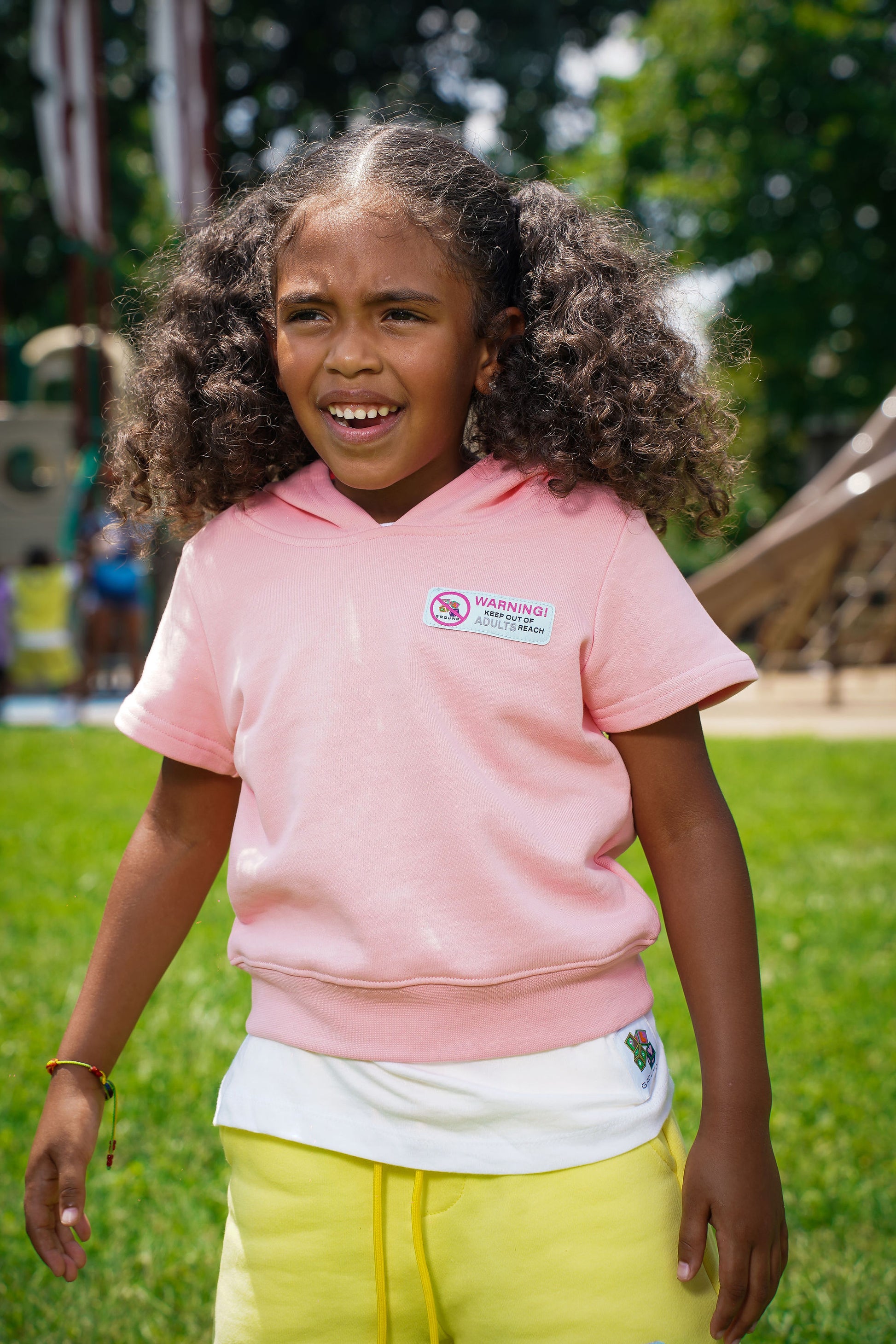 This Warning Keep Out of Adults Reach short-sleeve hoodie is perfect for your adventurous little one! The French Terry fabric will keep them comfortable, while the warning keep out of adults reach woven label on the right side ensures they stand out in style. It's the perfect addition to any child's wardrobe